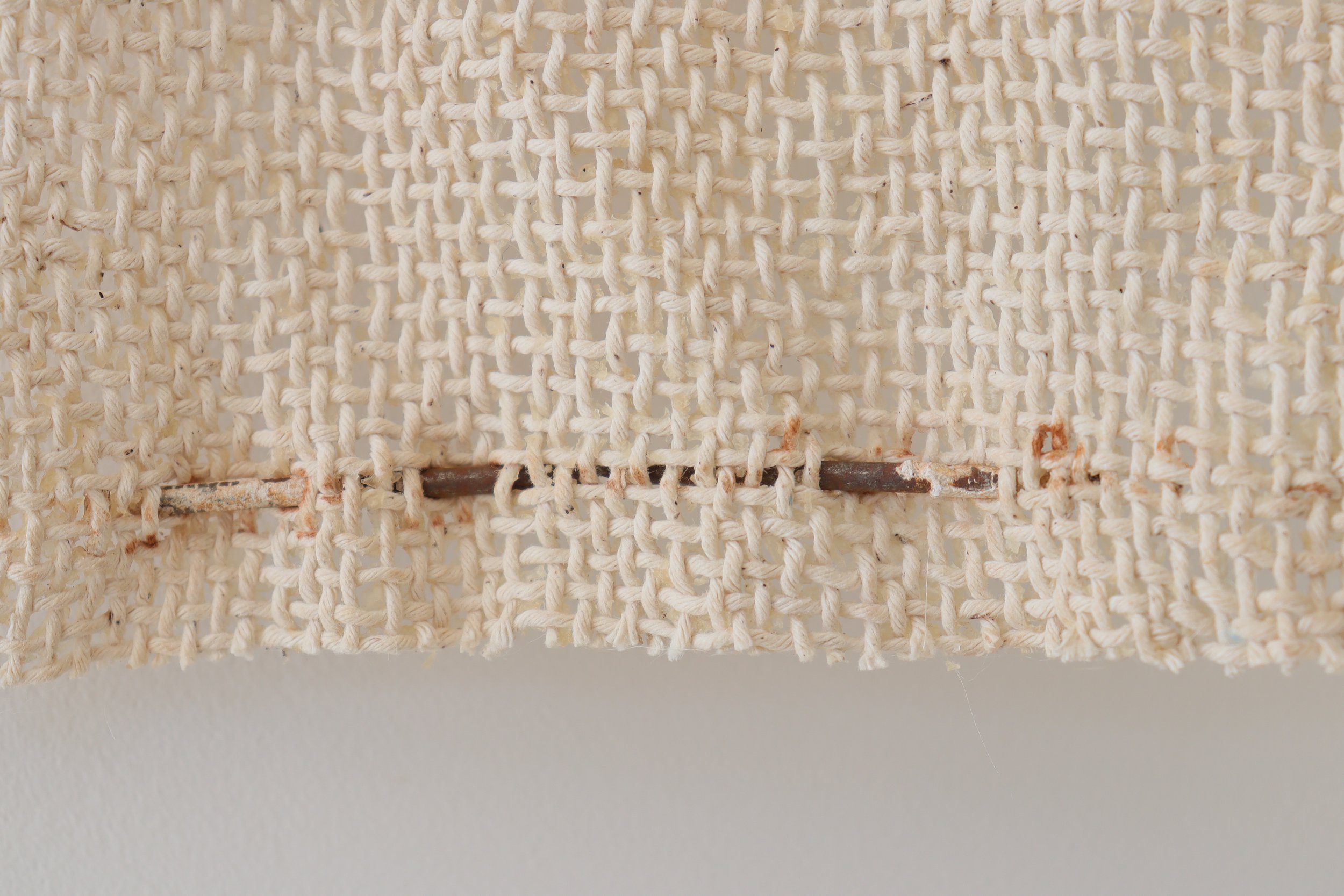 'Inside out' (detail), 2025 Found gate with discarded woollen blanket. 120 x 120cm.